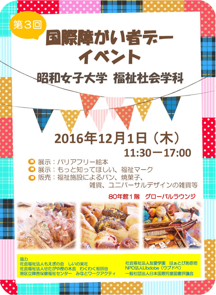 昭和女子大学 人間社会学部 福祉社会学科の国際障がい者デー 恒例になりましたイベントで2013コレクションが展示になります。