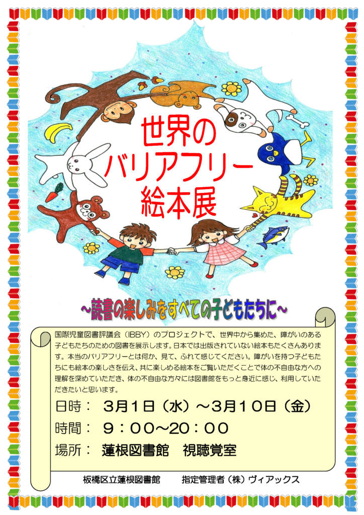 世界のバリアフリー絵本展2015国内最後の展示会 3月1日より東京都板橋区立蓮根図書館にて