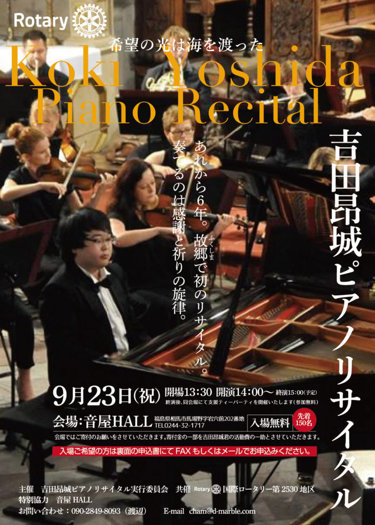 福島からの発信その6 浪江町出身青年ピアニスト ふるさと福島での初リサイタル 吉田昂城ピアノリサイタル bfefon 8年前 震災当時相馬東高校1年だった吉田さんは、 避難先から保養で訪れたオーストリアで、 ピアニストになる夢を実現しました。