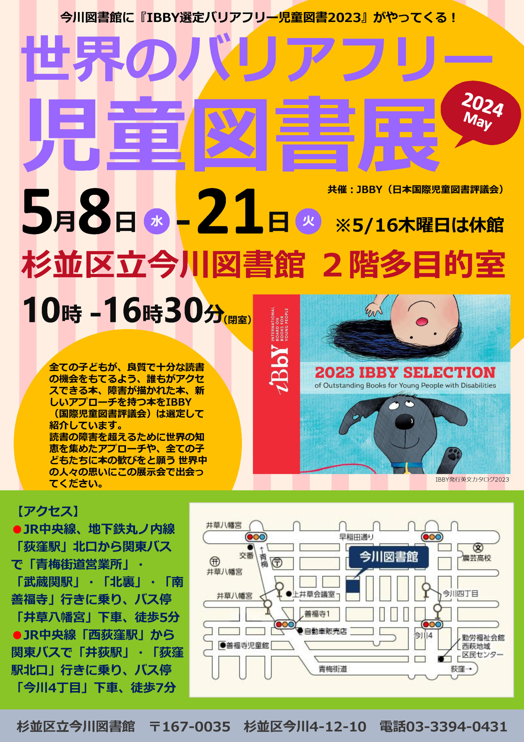 世界のバリアフリー児童図書展 ―IBBY 選定バリアフリー児童図書 2023― 巡回開始。5月8日から、杉並区立今川図書館