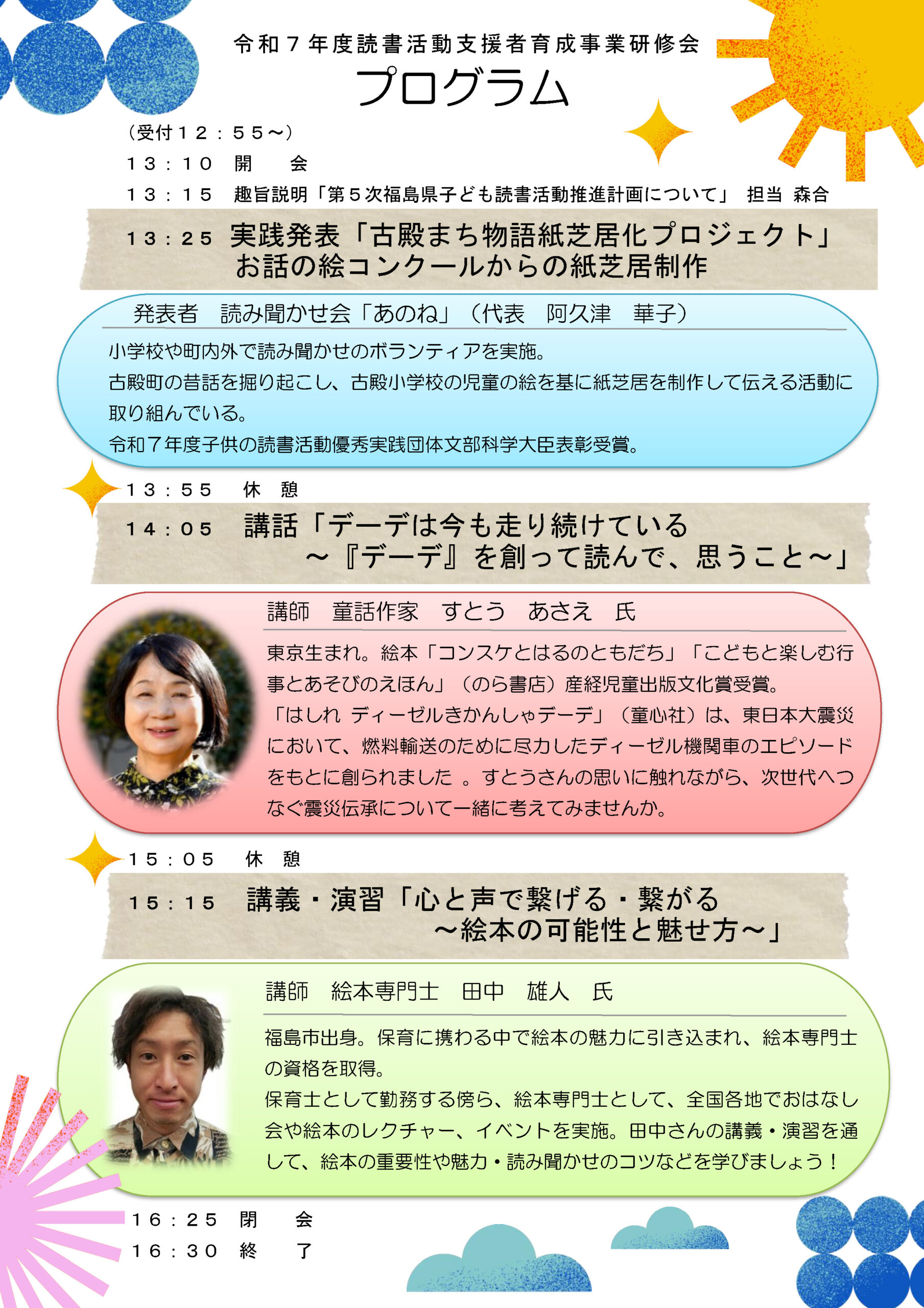 1,令和7年度ふくしまの未来をひらく読書の力プロジェクト 読書活動支援者育成事業 県中地区 研修