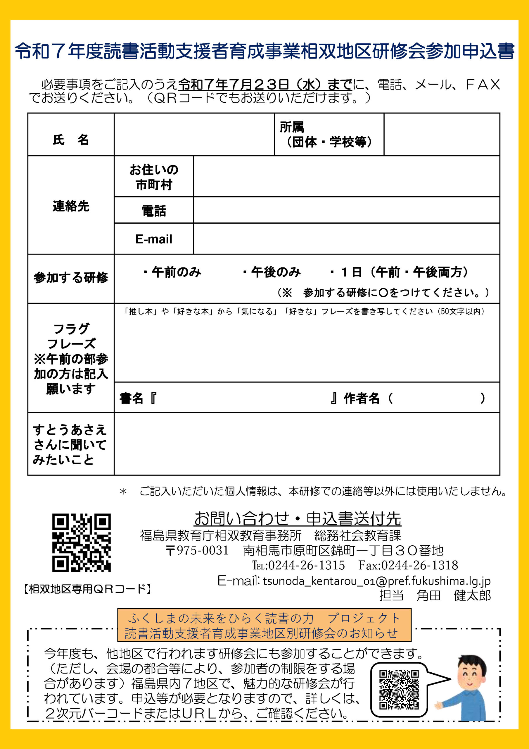 2,令和7年度 ふくしまの未来をひらく読書の力 プロジェクト 読書活動支援者育成事業 相双地区研修会