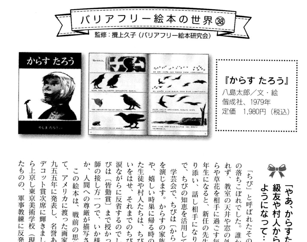『教育と医学 2025年9.10月号』<バリアフリー絵本の世界(38)>は、米国で1955年に刊行された『からすたろう』の邦訳版編集者西野谷敬子さんに、当時のエピソードなどを書いていただきました。