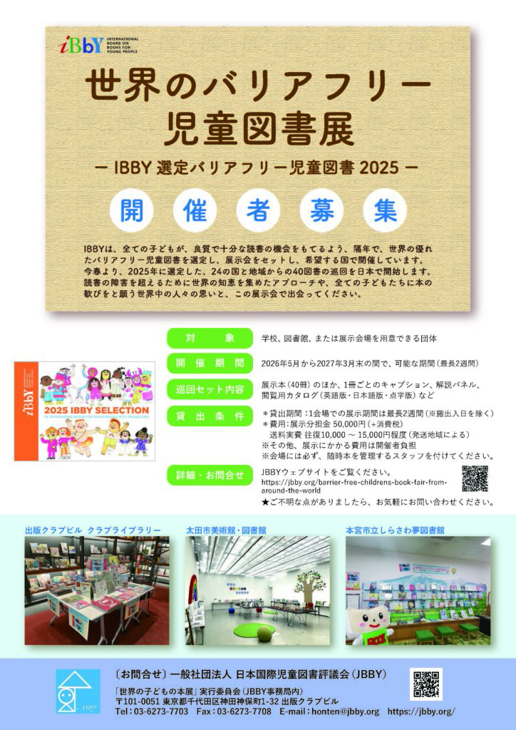 世界のバリアフリー児童図書展2025 ―IBBY選定バリアフリー児童図書展2025 開催者募集が始まりました!